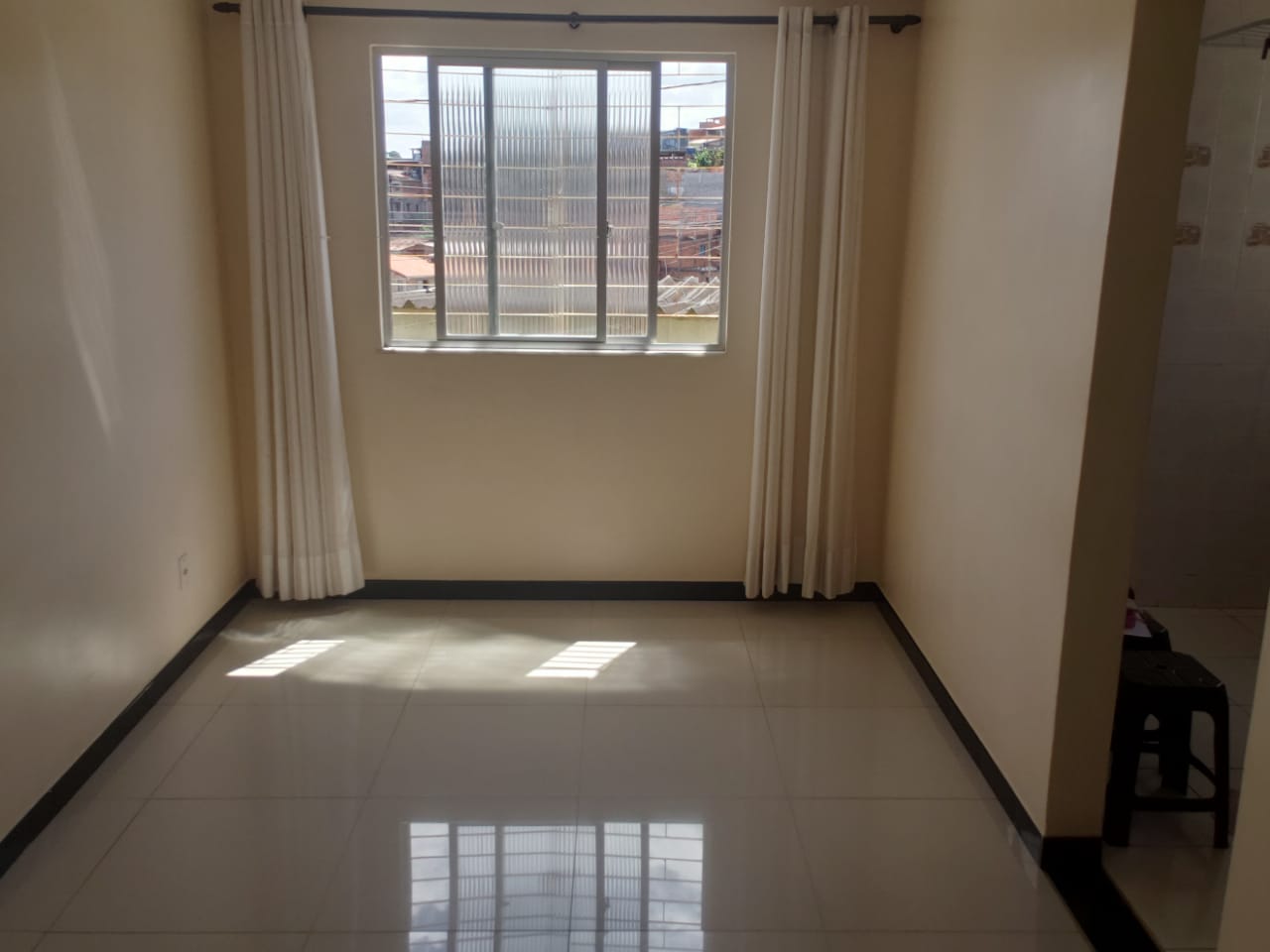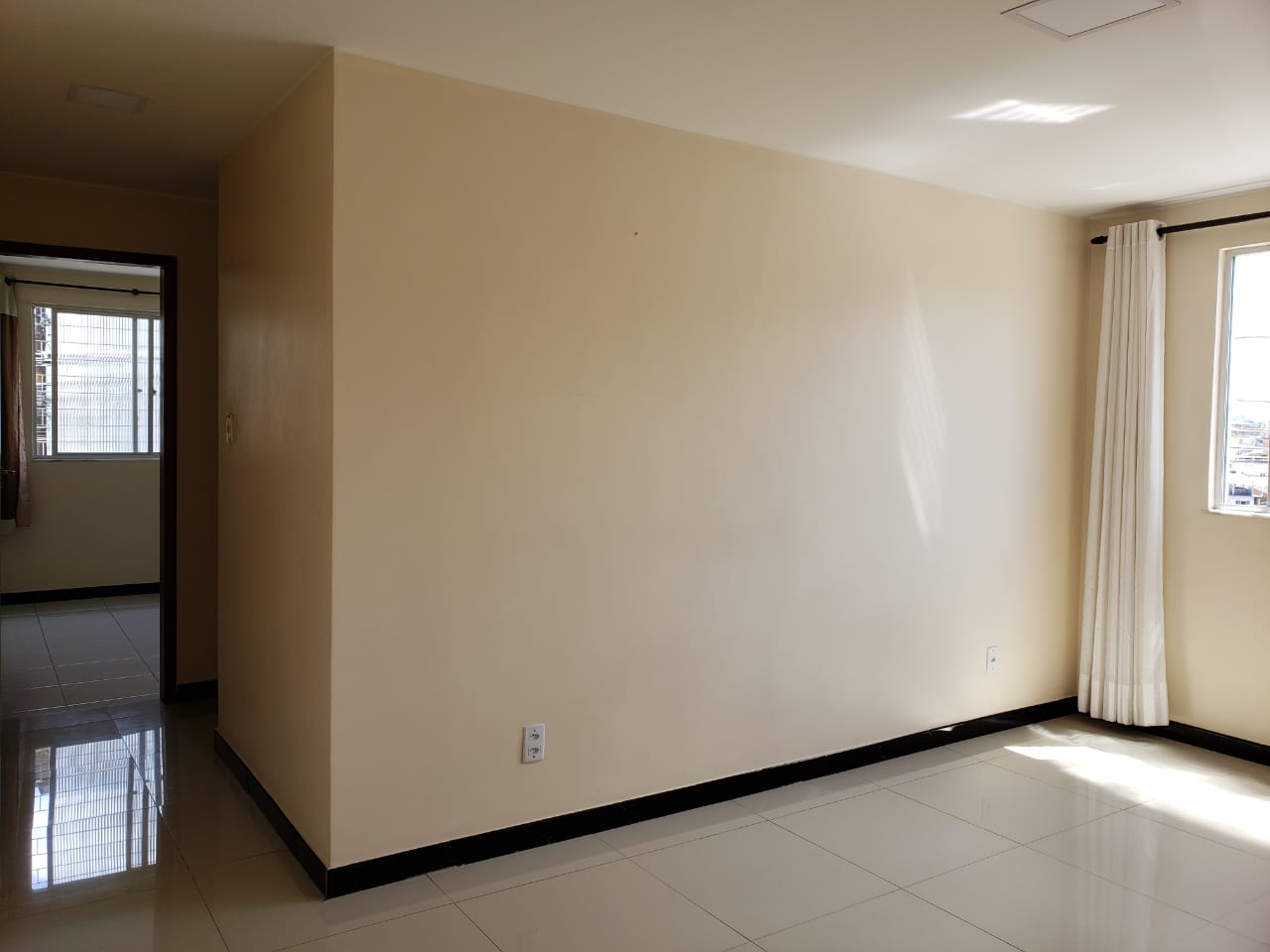 O apartamento no bairro Cabula com 51 metros quadrados, composto de sala, dois quartos, sanitário social, cozinha, área de serviço, área de circulação e uma vaga de estacionamento.